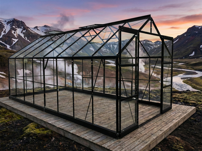 Björk er glæsilegur og sterkbyggður glerskáli fyrir kröfuharða. Með 4mm hertu öryggisgleri, ryðfríum festingum og 10 cm stálgrunni sem fylgir með, færðu gróðurhús sem stendur af sér íslenska veðráttu. Hvort sem draumurinn er að rækta eigið grænmeti eða skapa notalegt útirými fyrir kaffibollann, þá er Björk fullkomin viðbót við garðinn. Glæsilegur antrasít svartur litur og tvöföld rennihurð fullkomna svo útlitið og notagildið.